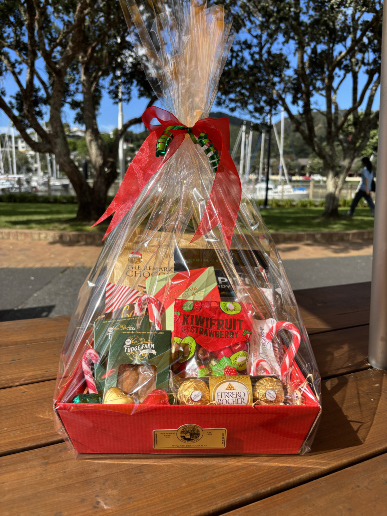 Your gift basket will be made up of a delicious array of Christmas themed chocolate & confectionary- and of course our Fudge made here in store!